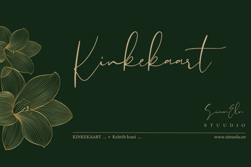 Kinkekaart on valikus nii virtuaalsena, kui paberil Stuudiost kohapeal.